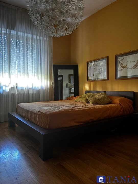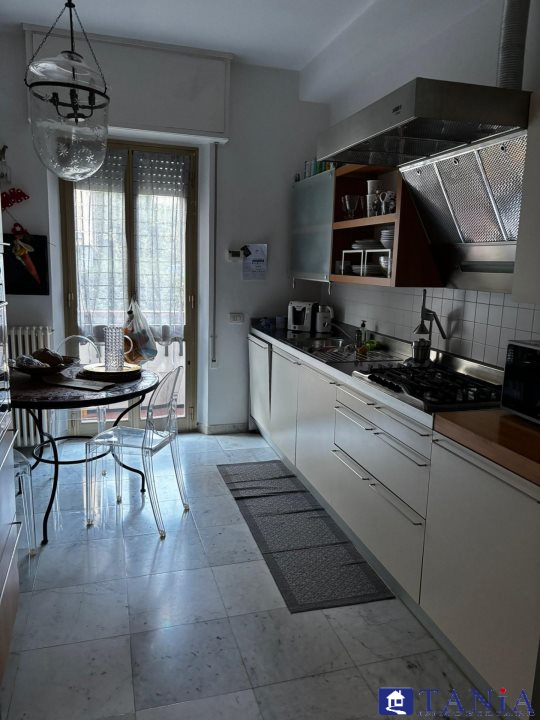 ingresso, salone doppio con balcone, cucina abitabile con altro balcone, due ampie camere, due bagni.